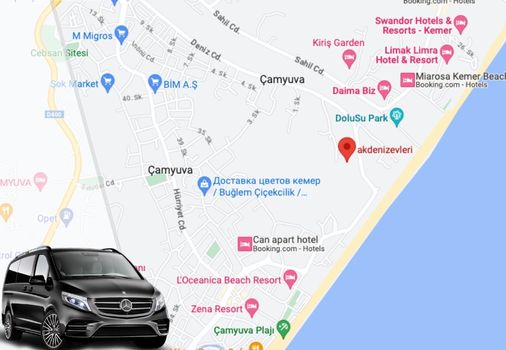 Bu yıl siz de Antalya`nın Kemer ilçesi Çamyuva tuzim merkezinde tatil yapmak isterseniz, ulaşım işlemleriniz konusunda iyitransfer`e güvenebilirsiniz. Antalya Havalimanı`ndan Çamyuva`ya transferler ve rezervasyon işlemleri için bizi günün her saati arayabilirsiniz. Dilerseniz WhatsApp hattımızdan iletişime geçebilir veya web sitemizden online rezervasyon yaparak Çamyuva transferlerinizi planlayabilirsiniz.