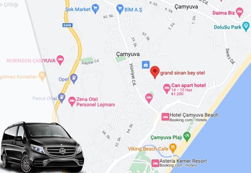 - Antalya Havaalanı Çamyuva otel transferleri veya tam tersi yönde Çamyuva otellerinden Antalya Havalimanı`na ulaşım için yapılan rezervasyonlarda, formda yer alan "Notunuz" kısmına otel ismini yazmanızı rica ederiz.