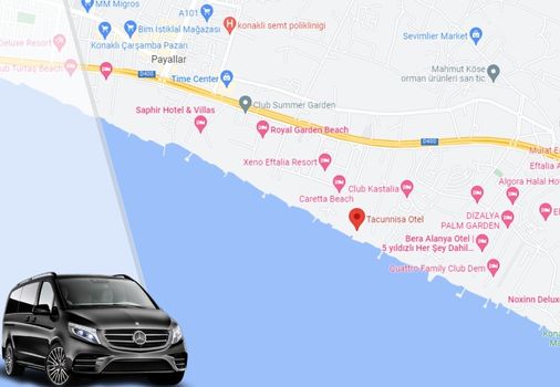 Antalya Havalimanı`ndan (AYT) Konaklı bölgesindeki 58 otele ulaşım